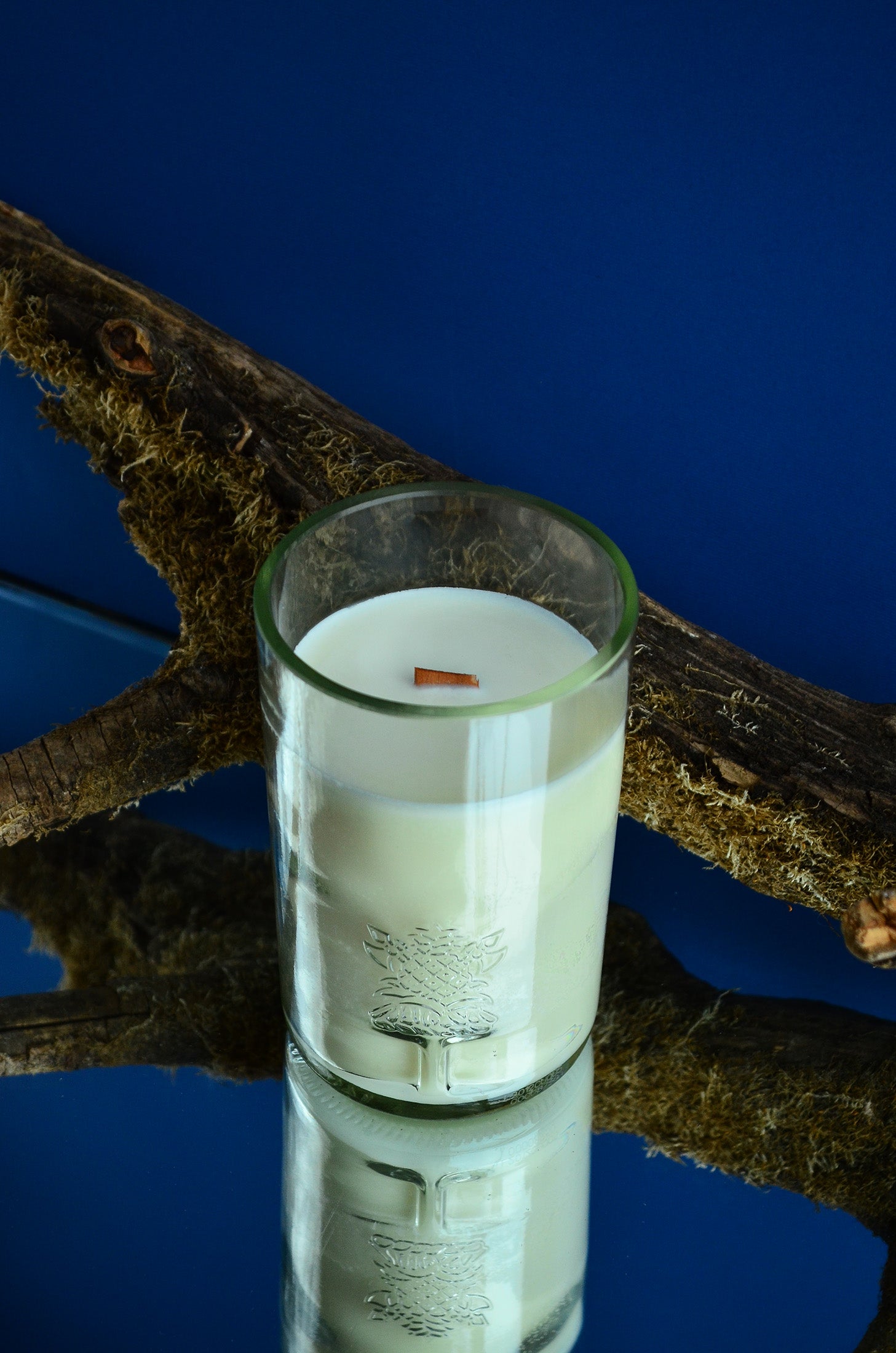 Сертифікований американський соєвий віск, дерев'яний гніт, який потріскує, ефірні олії, перероджене скло.